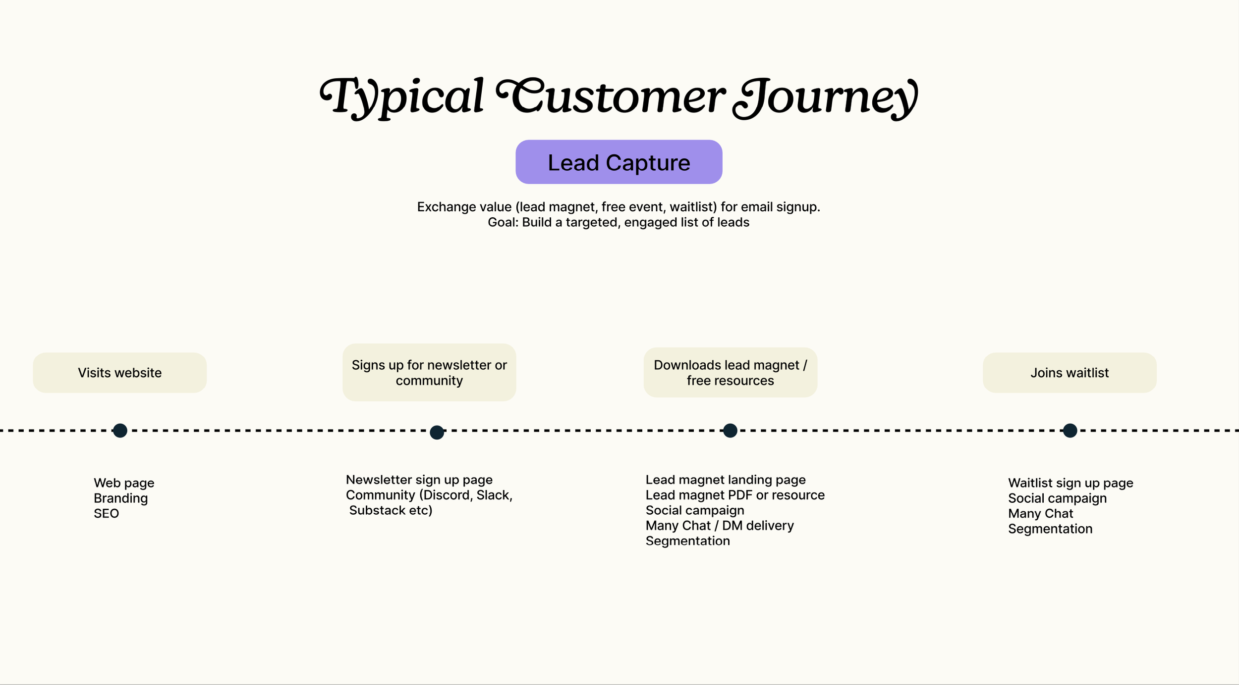 Launching is about guiding someone through a series of steps: from the first time they hear about you, to purchasing your product, to becoming a raving fan who sticks around. Each phase has its own purpose, touchpoints, and content.